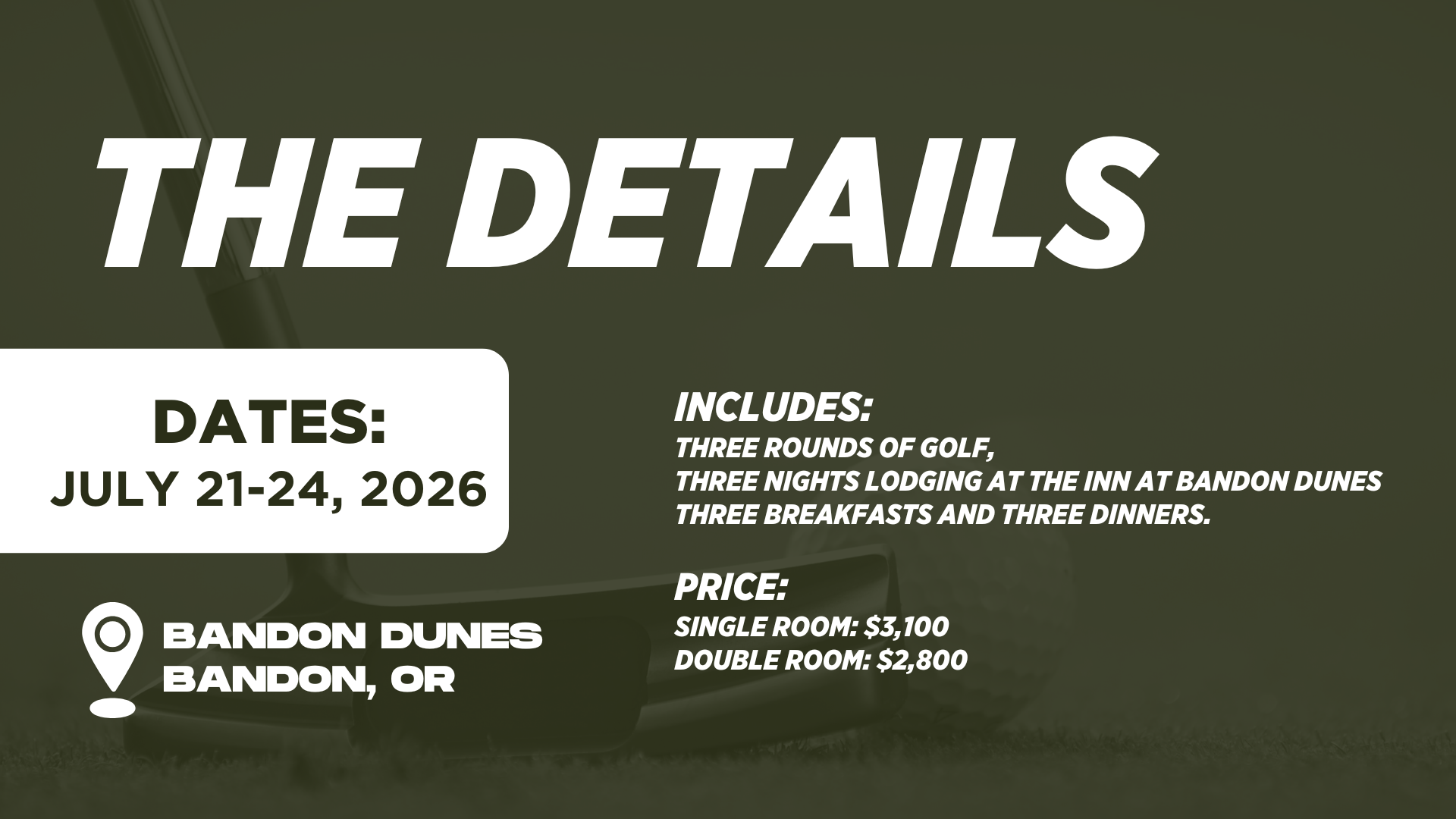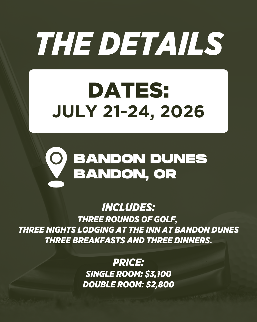 We will play Pacific Dunes, Bandon Trails and Sheep Ranch.